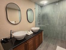 Cette villa dispose du concept de double chambre des maîtres, parfait à partager en couples. La première chambre dispose d'un lit king-size, la seconde a son propre balcon privé et un lit queen-size. La troisième chambre dispose également d'un lit queen-size. Les deux salles de bains des chambres de maître ont baignoire à remous et douche séparées, un régal pour vous faire dorloter et la troisième a une cabine de douche.