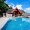 There are four bedrooms all with private bathrooms, an extensive swimming pool and garden. A highlight is the outdoor Thai sala containing a romantic Jacuzzi offering fabulous sea views.