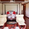 Down the winding staircase there are three elegant bedrooms with wooden floors and furnishings. The master suite has a front facing private balcony and lavish bathroom with a whirlpool tub and separate shower. The second double bedroom has a private balcony and shares a bathroom with the third bedroom which features bunk beds and twin beds ideal for children.