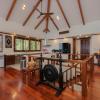 The stylish upper floor with open living spaces and an extensive balcony blends Asian décor with contemporary furnishings creating a relaxing and luxurious ambiance. Guests have a choice of dining in the air-conditioned interiors or al fresco on the front terrace. There is also a shady pavilion to the side of the property featuring a relaxing daybed next to a bar.