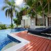 The car port and main entrance to the property are on the upper level where the living areas, swimming pool and garden can be found. Being closer to the sea, the sound of the waves can be heard lapping ashore and the views of the Andaman Sea are beautifully framed with tree tops and tropical palms. Enjoy tasty barbecues at the Thai pavilion next to the azure-blue swimming pool and lounge on the sun beds at the poolside deck.