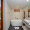 楼下有三个优雅的卧室,地板和家具都是木制的。主卧有一个私人阳台和一间配有冲浪浴缸和淋浴的豪华浴室。第二间双人卧室有一个私人阳台,第三间卧室有双层床和两个单人床,是孩子们的理想选择,这两件卧室共享一个浴室.